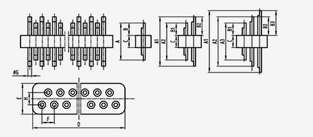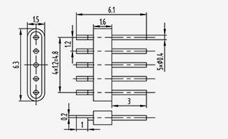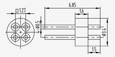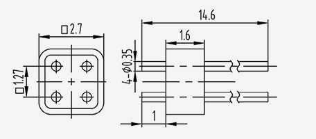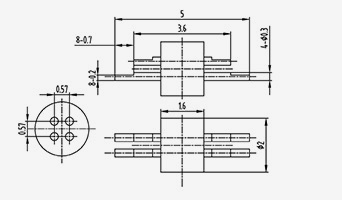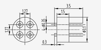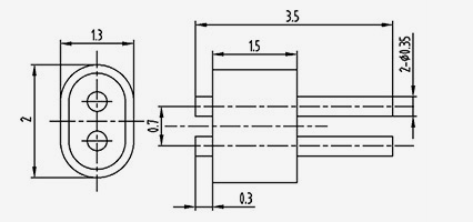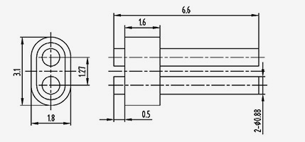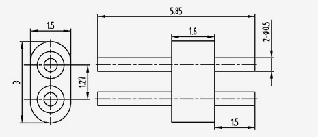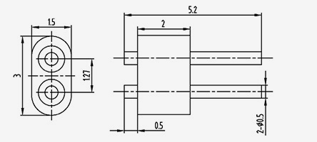 | 2-JD154330-0,5(5,8-2)-5 | UMl=5.8 UM2=5.1 | B1=2 B2=1,3 | 1.5 | 4.3 | 3 | 1.27 | 0.5 | 1.5 | 5 | 2 | Solda Aplainamento do lado superior |