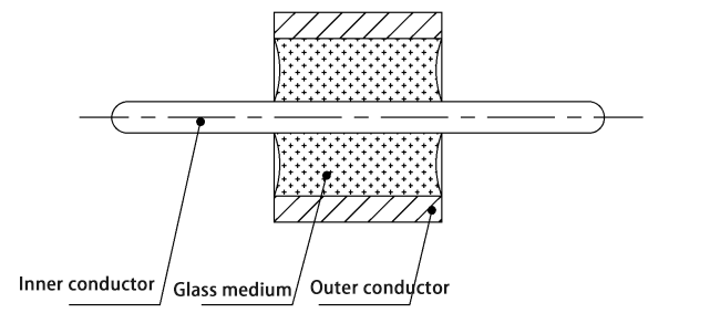 O isolador de vidro geralmente consiste em três partes: condutor externo, meio de vidro e condutor interno, e sua estrutura básica é mostrada na figura a seguir.