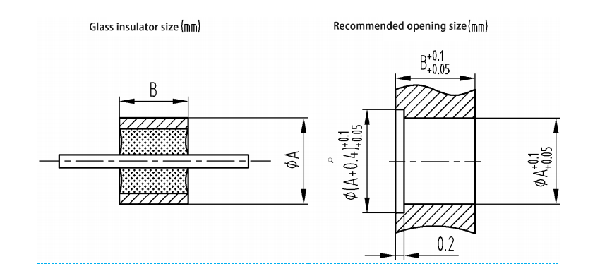 As dimensões recomendadas da abertura de instalação para isoladores de vidro de núcleo único são mostradas abaixo:
