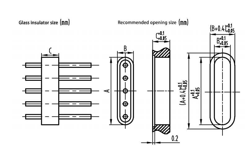 As dimensões recomendadas da abertura de montagem para isoladores de vidro multinúcleos são mostradas abaixo: