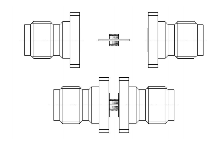 Isoladores de vidro de impedância característica de 50 ohms com conectores de onda milimétrica padrão SMA, 2,92, 2,4, etc. acoplados em ambas as extremidades para testes de desempenho elétrico.