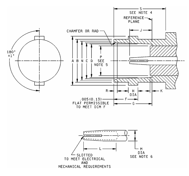 5. A dimensão "P" aplica-se à porção (se aplicável) do dielétrico que se estende além dos planos de referência pela dimensão K.