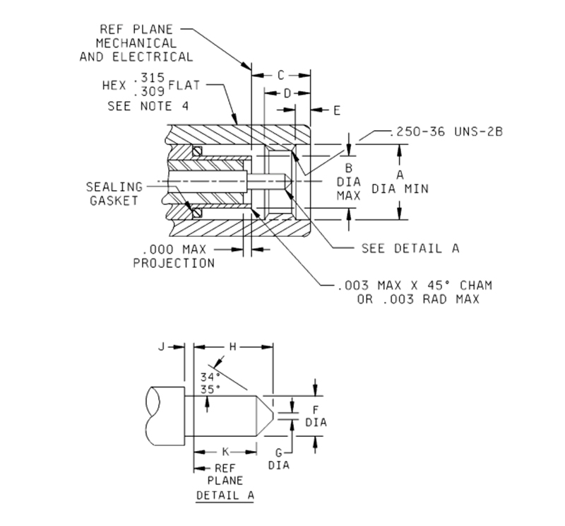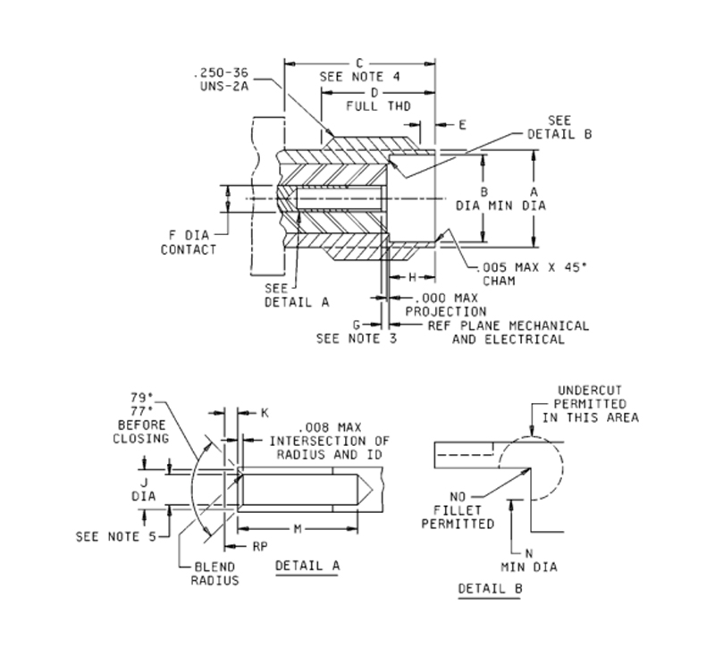 3. Peças previamente qualificadas usando uma recessão de contato máxima de 0,030 pol. (0,76) não são aceitáveis para uso governamental. Deve-se ter cuidado ao determinar se um projeto de recessão 0,030 está sendo usado durante a manutenção e substituição de peças.