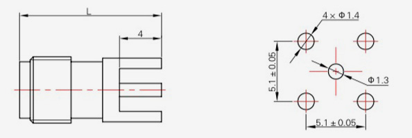 | SMA-KFD45 | 14.4 | 2.4 | 0,5×0,2 | Φ4.1 | Φ4,2 |