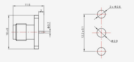 | SMA-KFD68 | 15.2 | 3.2 | 0,5×0,2 | Φ2.1 | Φ2,2 |