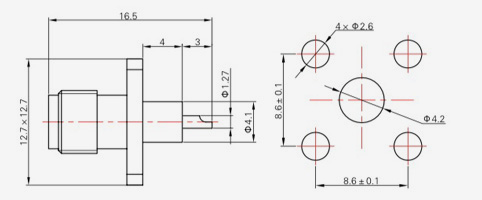 | SMA-KFD73 | 16 | 4 | 1,27×0,2 | Φ4.1 | Φ4,2 |