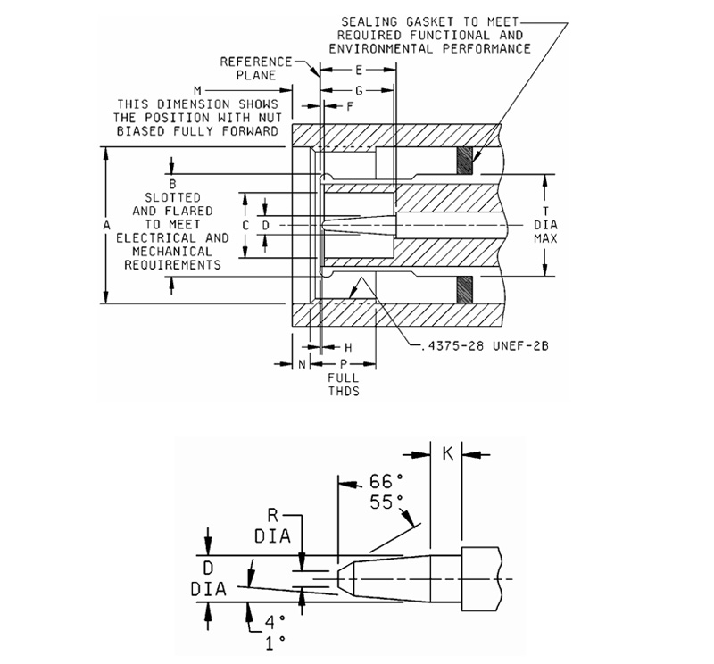 1. Esta interface deve atender aos requisitos de bitola especificados em MIL-PRF-39012/26.